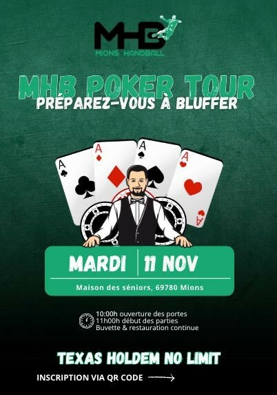 Mionshandball organise son POKER TOUR 2025 le mardi 11 novembre 2025 à la maison des seniors de Mions.